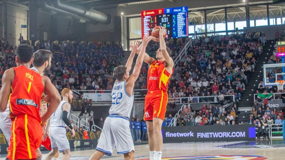 Ya dentro de la instalación deportiva, remozada para la ocasión con nuevo equipamiento para ajustarse a la normativa FIBA, los jugadores españoles se sintieron arropados por el público cacereño desde el calentamiento. Alberto Díaz y Joel Parra, los dos únicos jugadores de este equipo que fueron campeones de Europa el pasado mes de septiembre, fueron de los más aclamados por los aficionados. También sería el caso de Álex Reyes, hijo del cacereño y exjugador del Cáceres Miguel Ángel Reyes. El alero perteneciente al Bilbao Basket tuvo el honor de hacer su debut con la selección española absoluta en su ciudad natal tras jugar algo más de tres minutos en el segundo cuarto.