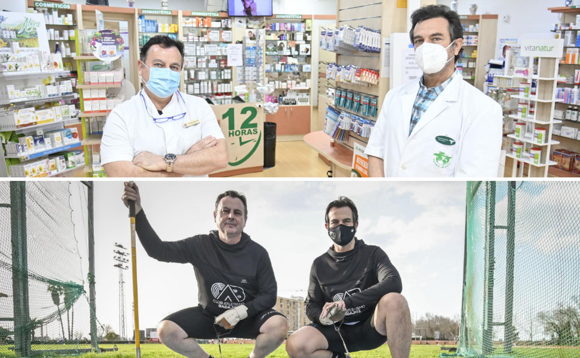 Los farmacéuticos Jorge y Luis García Doncel, hermanos de 55 y 60 años, han comenzado a practicar los lanzamientos hace tres años que les ha llevado a participar en los campeonatos de España, Europa y el Mundo en categoría MásterEn su día a día viven en la rebotica rodeados de pastillas, geles hidroalcohólicos, mascarillas, recetas y demás productos que puedas encontrar en una farmacia, pero varias veces a la semana se quitan la bata y se enfundan en su equipación deportiva del Club Deportivo Atletismo Badajoz para meterse en la jaula de lanzamientos de La Granadilla. Son los hermanos Jorge y Luis García Doncel, de 55 y 60 años, respectivamente. Cada uno de ellos regenta una farmacia en la capital pacense, Jorge en la avenida Fernado Calzadilla y Luis en Damián Téllez Lafuente. Ambos reconocen que la pandemia ha supuesto tiempos difíciles para su profesión: «Nos llegaba gente tosiendo, sin mascarillas, sin guantes, precios desorbitados...».