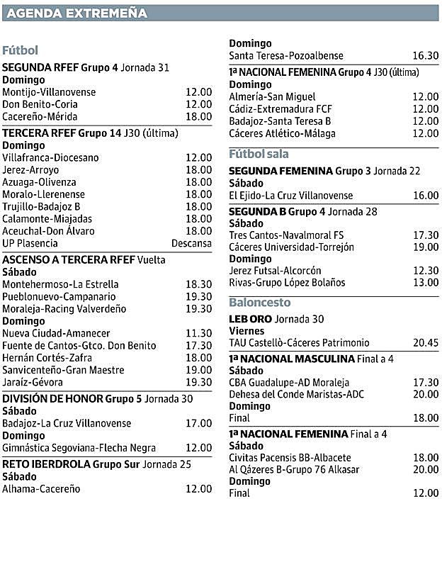 Aquí puedes ver los horarios de todos los deportes del fin de semana en Extremadura