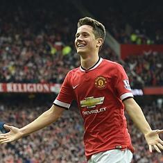 Ander Herrera celebra un gol con el Manchester United.
