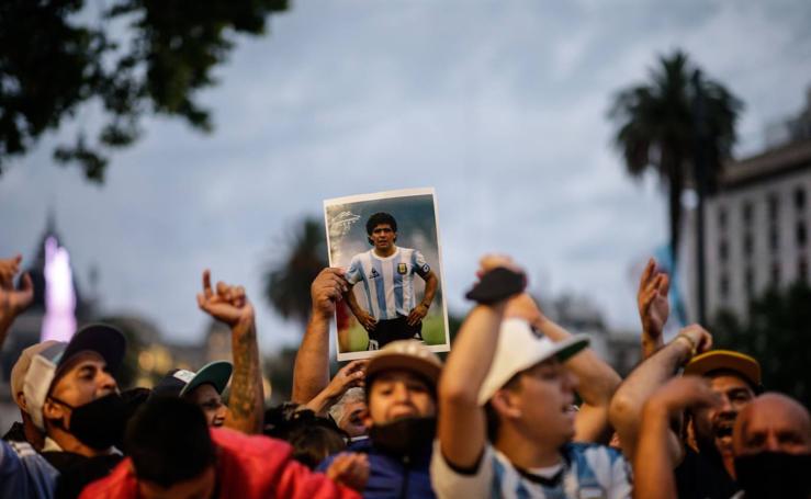 Ni la pandemia del coronavirus parece frenar el deseo de decenas de miles de argentinos que han velado toda la noche para poder presentar sus respetos al '10'. Se espera que el velatorio sea tan multitudinario como el de Evita en 1952 o el de Juan Perón, en 1974. El presidente argentino, Alberto Fernández ya declaró ayer, nada más confirmarse el fallecimiento, tres días de duelo nacional. El entierro estaba previsto para este mismo jueves en el cementerio de Bellavista una vez finalice el velatorio, pero la afluencia de aficionados puede retrasarlo hasta el viernes.