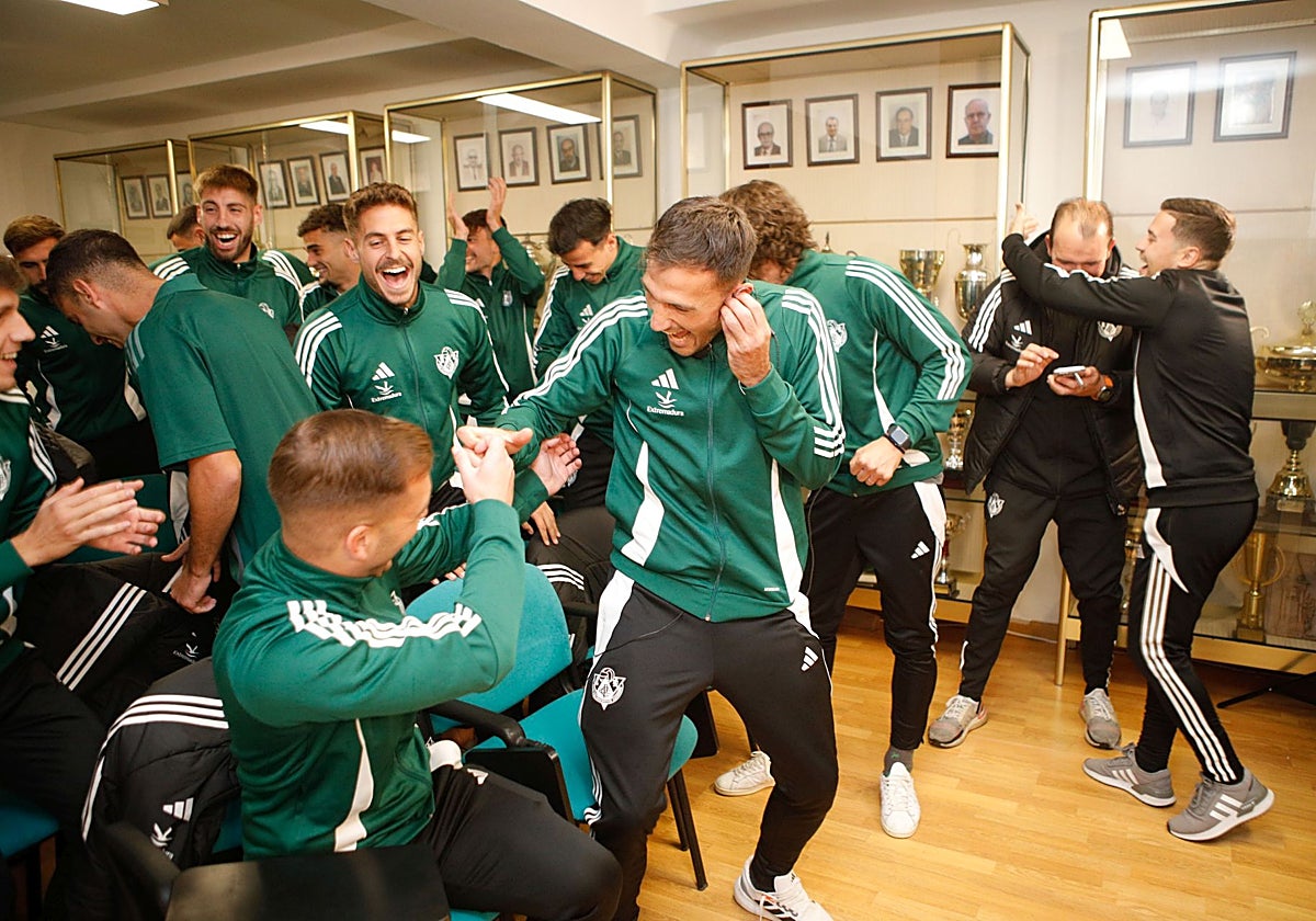 La Federación Española de Fútbol había habilitado conexiones con los clubes modestos para conocer ‘in situ’ las impresiones conforme se fueran componiendo los cruces. El desfase en la conexión permitió que la realización conectara unos segundos antes de que la plantilla conociera la noticia por ese retardo, lo que permitió presenciar en directo la celebración verdiblanca íntegramente. Fútbol humilde en estado puro y en su máximo apogeo. Saltos, cánticos, abrazo coral, aplausos atronadores, puños al aire... Álvaro Clausí, capitán de la escuadra extremeña, absorbido por el atronador jolgorio, apenas oía las exhortaciones del presentador de la gala que, sin éxito, trataba de dar altavoz a las reacciones en un contexto que era histriónicamente muy ilustrativo del estado de euforia. Recolocándose como podía el pinganillo, tras varios intentos, consiguió responder a su interlocutor. «Era un rival que todos queríamos y esperábamos, sabíamos que era complicado porque había muchos equipos, pero estamos muy contentos», acertaba a expresar el centrocampista alicantino.