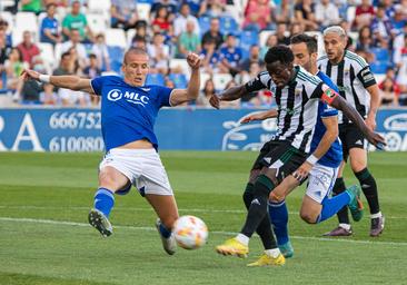 Como si nada hubiera cambiado, el Badajoz buscaba con determinación la portería rival y dispuso de tres ocasiones clarísimas en el primer cuarto de hora para estrenar el marcador a su favor. Primero la tuvo Adilson en el 7, pero al pisar el área la envió alta. En el 12, de nuevo el escurridizo extremo luso pudo adelantar a los pacenses pero su disparo con todo a favor se estrelló en el larguero tras recibir un gran centro de David Soto. Y después sería Gorka Santamaría en un mano a mano con Samu Casado que resolvió el portero local con un paradón.