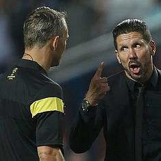 El técnico del Atlético de Madrid saltó al césped tras el cuarto gol para increpar a Raphael Varane