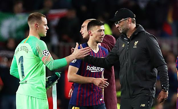 Pero, desde entonces, el antiguo portero del Mönchengladbach es un imprescindible en las dos competiciones: acaba de lograr su cuarta Liga y está cerca de una segunda final europea. Y frente al Liverpool el miércoles pasado, sus tres paradas decisivas al inicio de la segunda parte son un buen resumen de su forma actual: siempre se puede contar con el tranquilo Ter Stegen cuando las cosas se ponen difícil. «Su temporada es extraordinaria», dijo el técnico Ernesto Valverde, recordando que «es un jugador que nos transmite tanta tranquilidad atrás que nos hace asentarnos en el campo sobre todo en los momentos en que el contrario siempre nos aprieta más». «Él siempre tiene ese punto de parecer que nunca pasa nada cuando si pasa», añadió el técnico azulgrana.