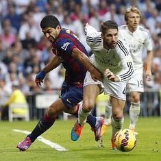 Bromeó el día anterior Carlo Ancelotti con «una sorpresa» en la alineación del Real Madrid, mientras que Luis Enrique anunció que Luis Suárez tendría «minutos», aunque el técnico asturiano no quiso desvelar si el uruguayo sería titular en el Bernabéu, para estrenarse desde el pitido inicial con la camiseta azulgrana y también en la Liga una vez cumplidos sus cuatro meses de sanción. Aunque no podía descartarse, con el objetivo de intimidar desde el inicio al Madrid y a su afición, la entrada de Luis Suárez en el once fue inesperada, aunque el delantero uruguayo no pudo aprovecharse de las debilidades de los blancos en defensa y el debut del goleador de los 81 millones de euros quedó totalmente eclipsado.