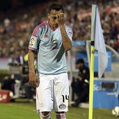 Orellana, según figura en el acta arbitral, en el minuto 88 del Real Celta-Barcelona (0-1), fue expulsado por "no estando el balón en juego, recoger un puñado de césped del terreno de juego y lanzarlo contra un adversario con fuerza excesiva, llegando a impactarle".