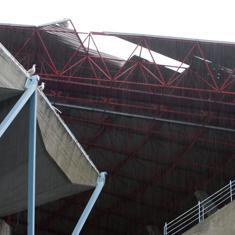 Parte del techo de la grada de Río de Balaídos ha perdido la cubierta.