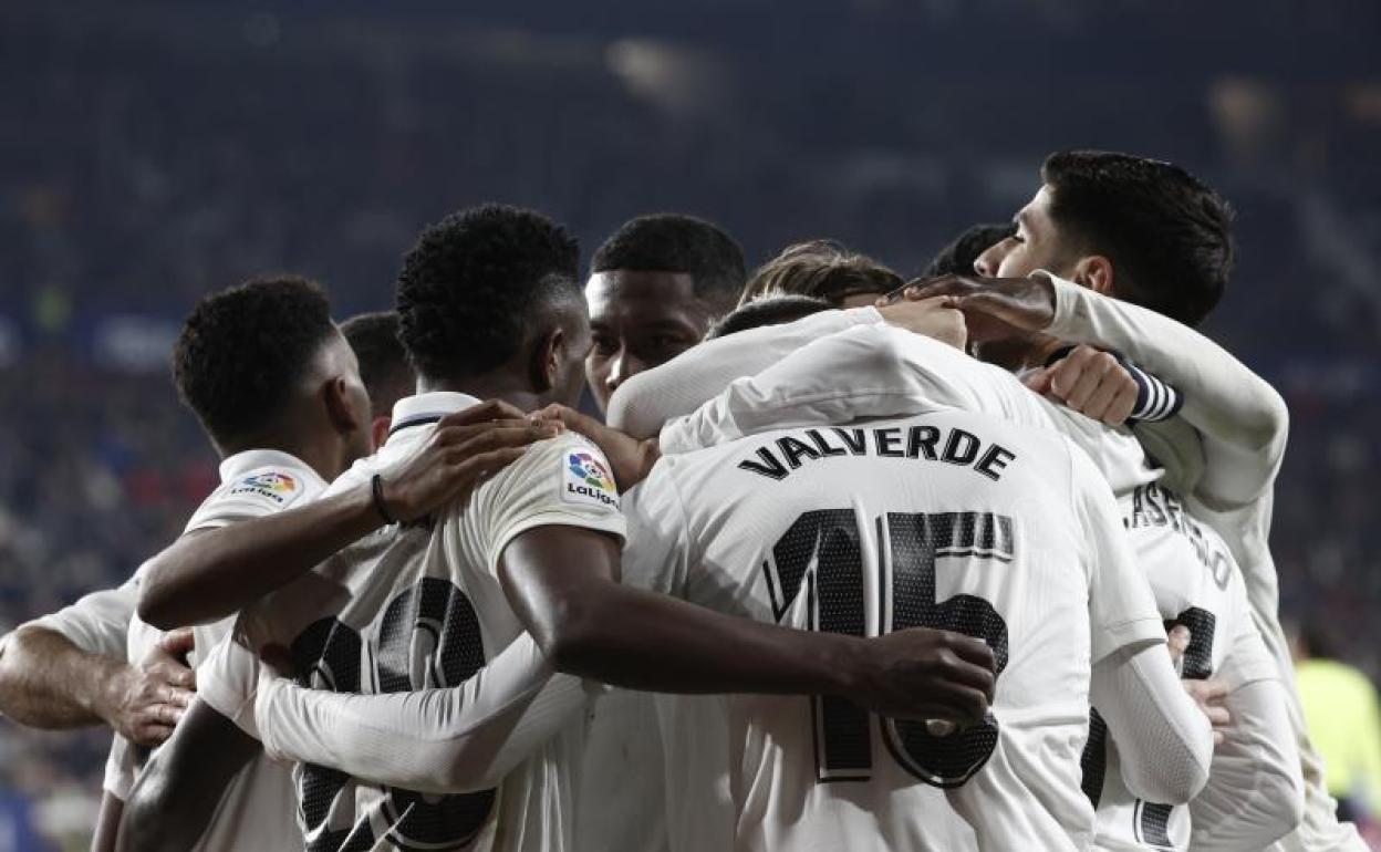 Los jugadores del Real Madrid celebrando la victoria EFE