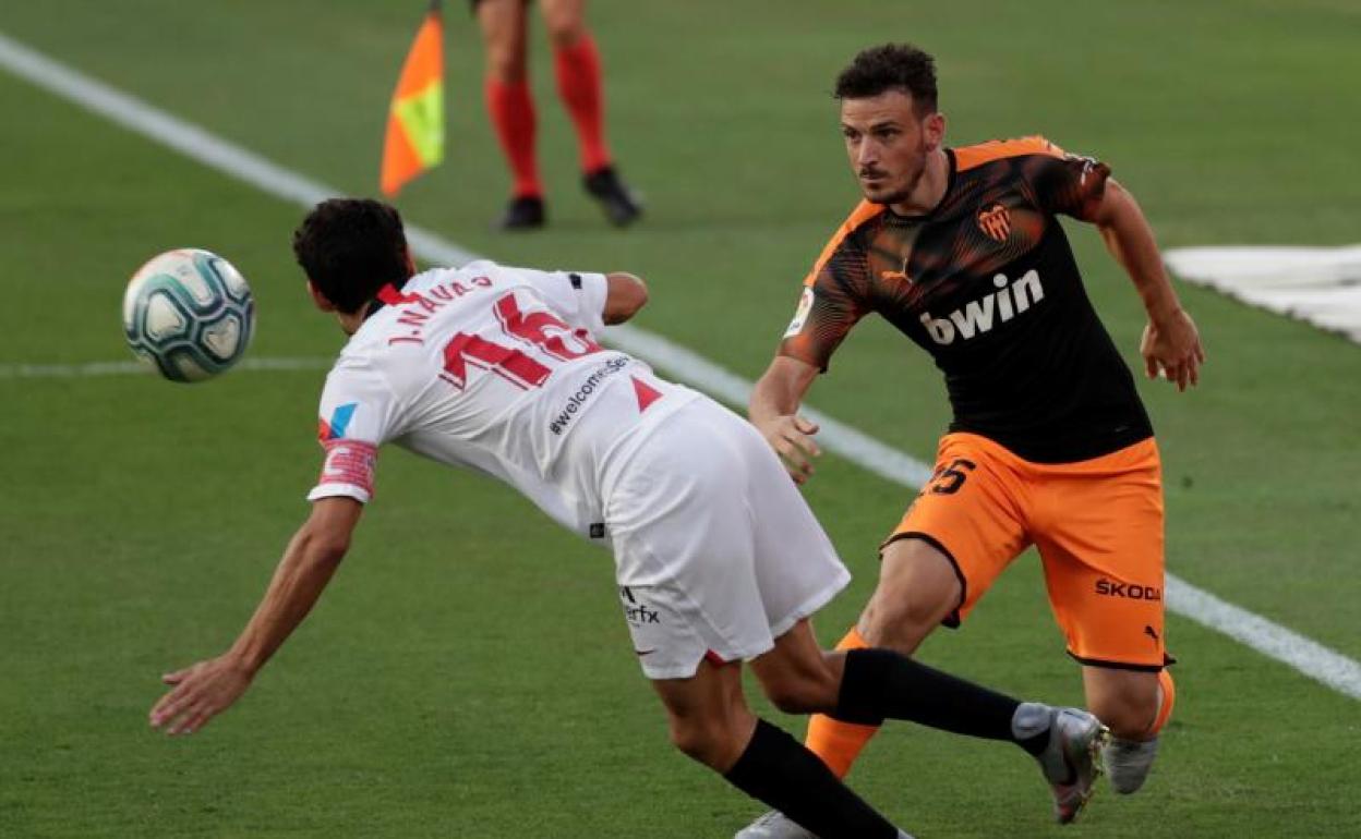 El técnico local, Julen Lopetegui, sin el brasileño Fernando, con molestias, ni el exvalencianista Éver Banega, sancionado, dio de nuevo la titularidad al central brasileño Diego Carlos y a su habitual tridente ofensivo con el argentino Ocampos, el holandés De Jong y Munir, mientras que Voro tiró de la 'vieja guardia' al volver al once gente como Wass, Parejo, Mangala, Paulista o Coquelin.
