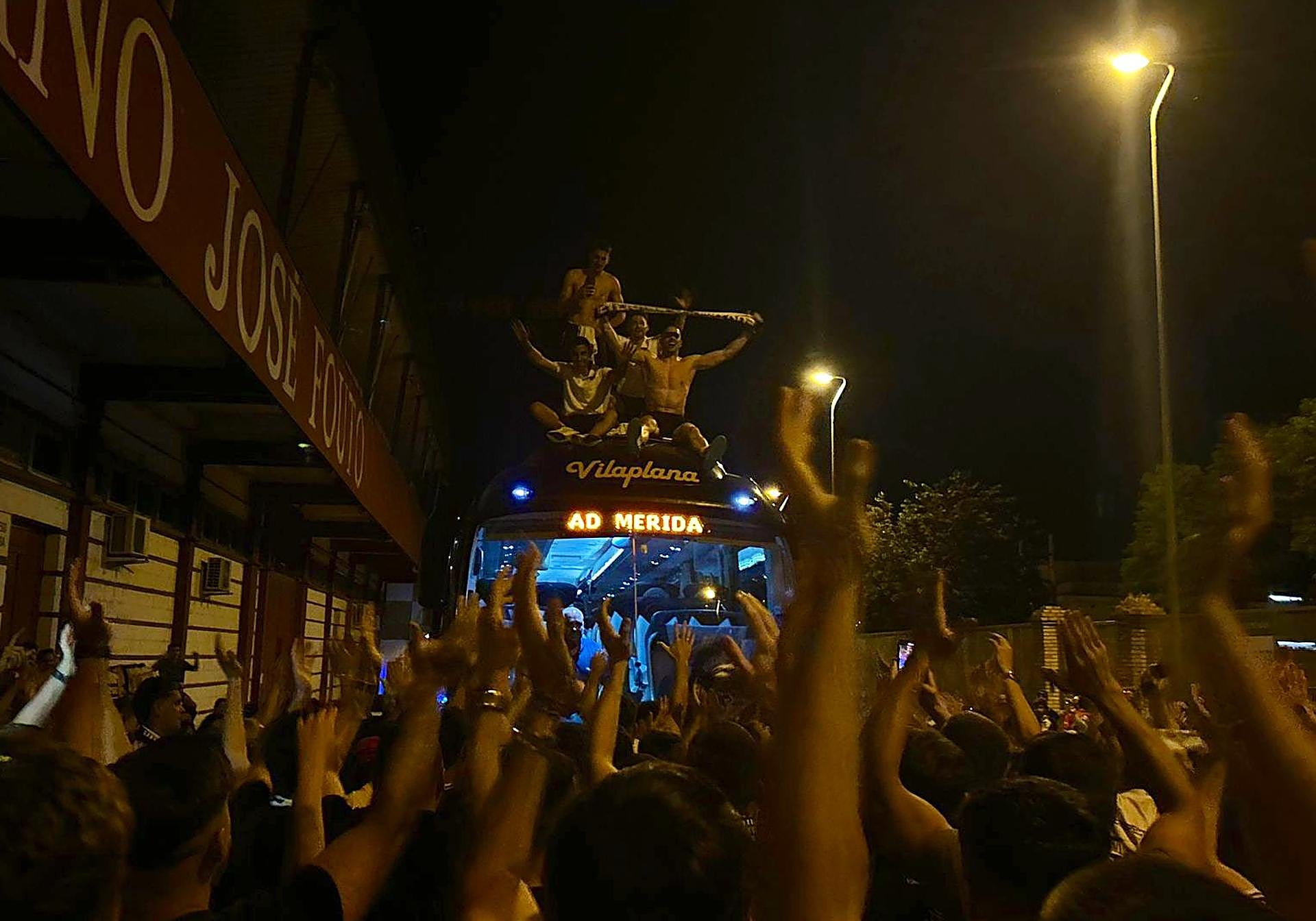 «Romanos, creed. No dejad de hacerlo nunca. Lo de hoy es para disfrutar y celebrarlo, pero todavía nos quedan cosas por hacer. Gracias por el apoyo, ha sido increíble ver a todos esos romanos dándonos alas. La celebración en el campo no la olvidaré jamás. ¿Y ahora? A por más», escribió el técnico ilicitano en sus redes sociales, ya en el bus camino de Mérida, donde le aguardaba la otra gran estampa de la jornada. Allí, a eso de las 1.20 horas de la madrugada, le esperaban algo más de cien romanos para festejar la clasificación en la calle de tribuna.
