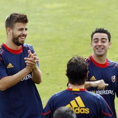 Piqué (i) y Xavi, en un entrenamiento con España.