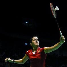 Carolina Marín golpea la pelota.