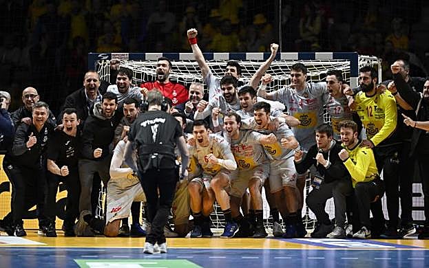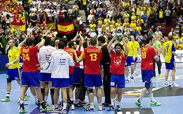 Javier Soriano / AFP La segunda presea mundialista en la historia del balonmano español fue una suerte de catarsis para la selección de Valero Rivera, que dos años antes había caído por sorpresa a las primeras de cambio. España cedió ante Dinamarca en semifinales pero se impuso a la vieja bestia negra, Suecia, ante su público.