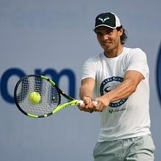Rafa Nadal, durante la 'master class' en Nueva Delhi.