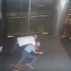 La grabación de un minuto de las cámaras de vigilancia muestra a Blake muy sorprendido, mientras el policía lo mantiene contra el suelo para esposarlo y llevárselo detenido.