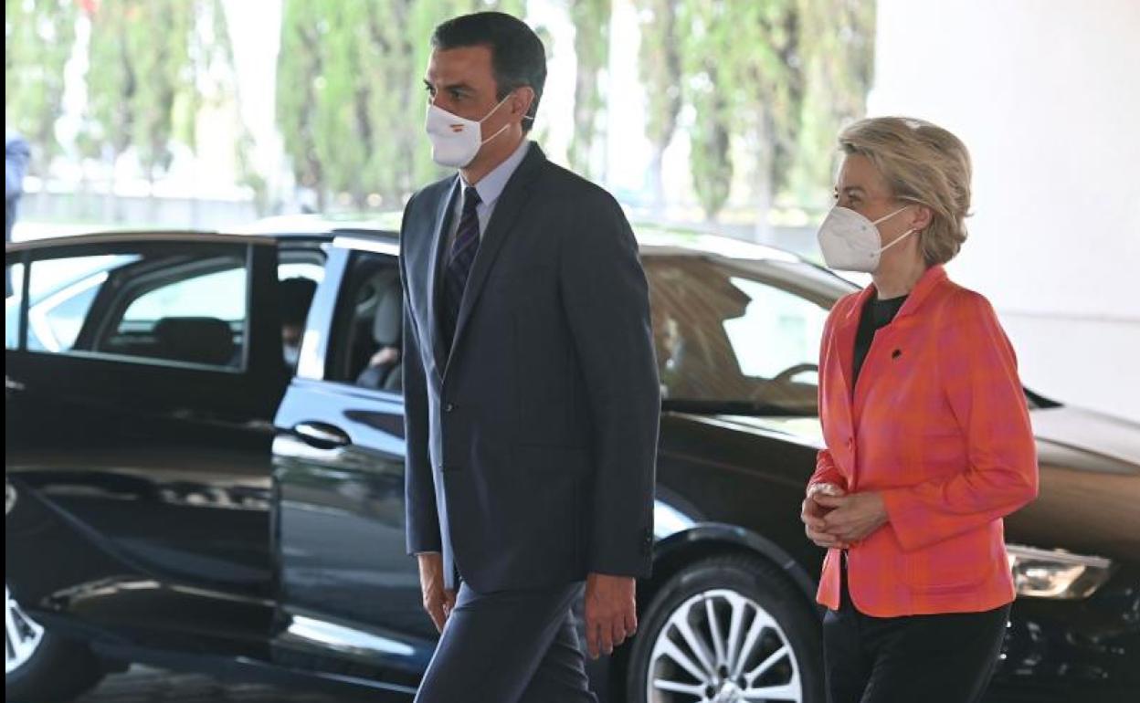 En el acto de entrega al presidente del Gobierno, Pedro Sánchez, del visto bueno de Bruselas al plan español, Von der Leyen ha destacado en Madrid la «determinación, fortaleza y solidaridad» de los españoles durante la pandemia. «Esos son los valores que definen los fondos Next Generation», ha defendido.