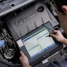Un mecánico hace un análisis a un Volkswagen Touran diesel 2.0 TDI con un motor EA189.