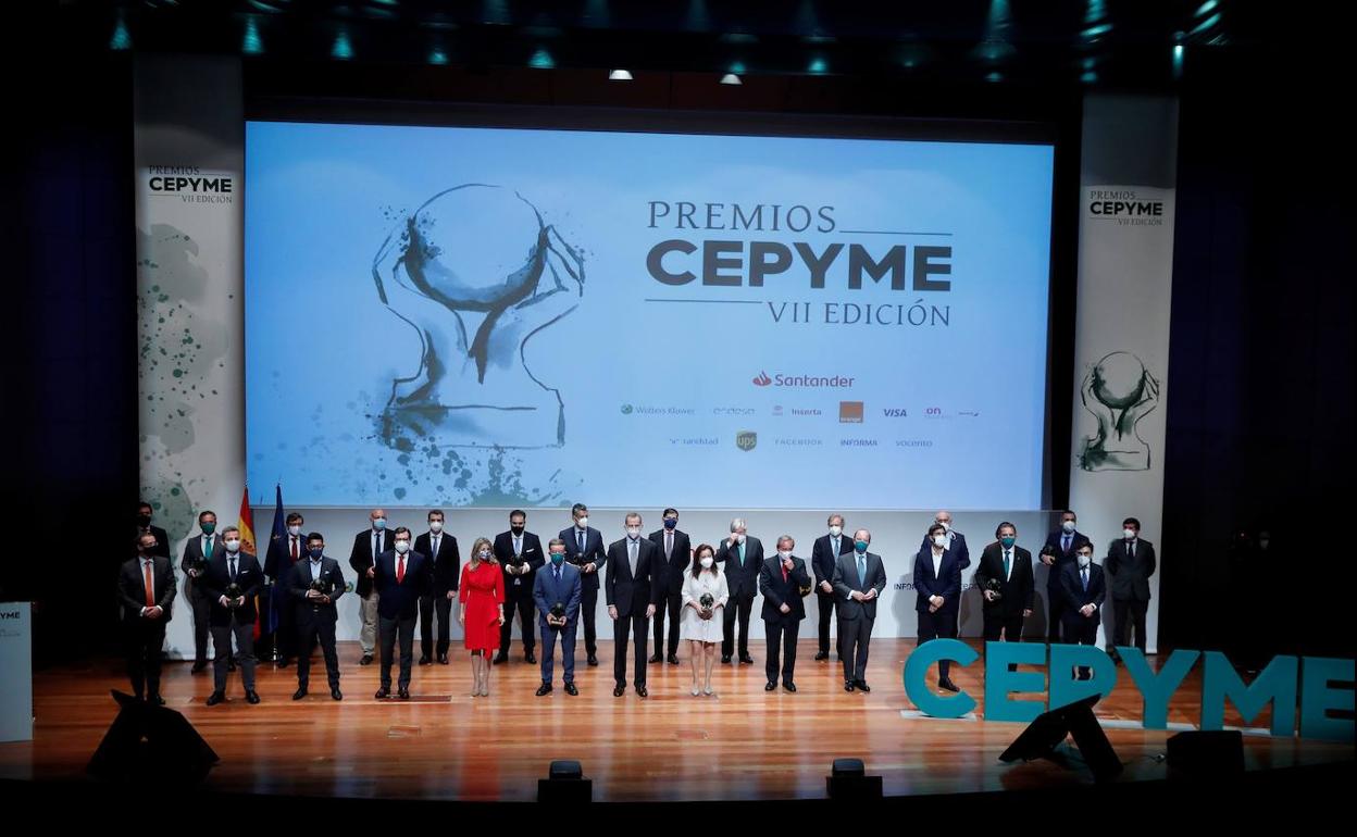 La VII edición de los premios Cepyme, que desde 2014 reconocen la labor y el esfuerzo de las pequeñas y medianas empresas, ha estado este año marcada por la pandemia de la covid-19. De hecho, el presidente de la patronal de las pymes, Gerardo Cuerva, no pudo asistir a la ceremonia de entrega de estos galardones debido a que se encuentra enfermo de coronavirus.