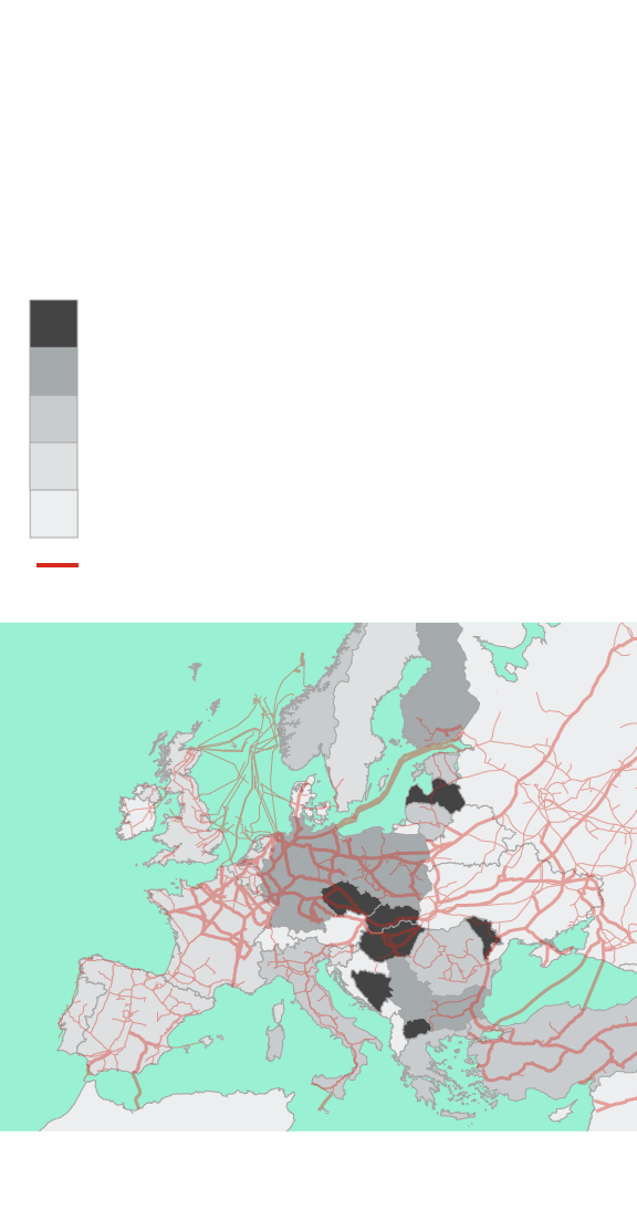 La llegada de gas a través de buques regasificadores se ha convertido en una cuestión primordial. El problema es que no todos los países disponen de estos puntos en los puertos, donde llega el gas natural licuado (GNL) para ser tratado e introducido en los gasoductos. España, por ejemplo, es el país que ostenta un 25% de todas las regasificadoras de la UE, muy por delante del resto de socios. El problema es que apenas tiene capacidad de conexión, vía Pirineos, con el resto de Europa para suministrarles gas.