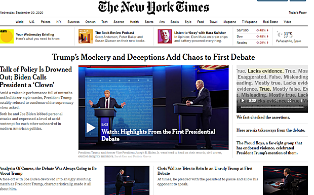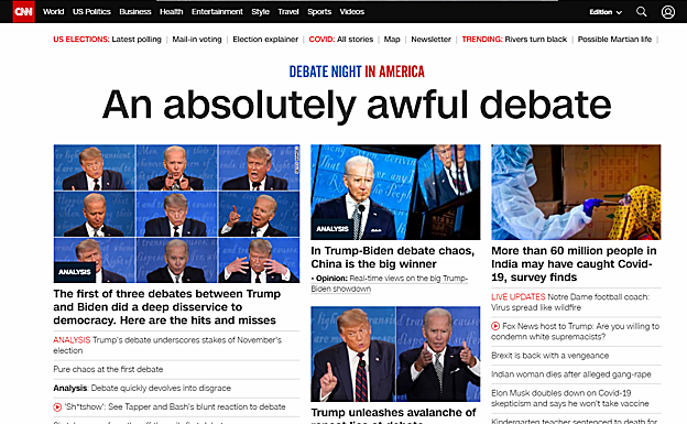 Más contundentes se han mostrado algunos analistas y politólogos, sumidos en el estupor tras asistir a un espectáculo de telerrealidad, impropio de una campaña americana y peor en calidad respecto al nivel de confrontación que mostraron el propio Trump y la entonces candidata demócrata Hillary Clinton en 2016. La mayoría de los medios se muestra demoledor sobre esa hora y media de discusiones broncas, ataques personales, interrupciones constantes e incluso insultos, donde lo que menos han brillado son los argumentos sociales, sanitarios o económicos para rescatar a un país en caída libre en favor de la celebración de «un auténtico circo».