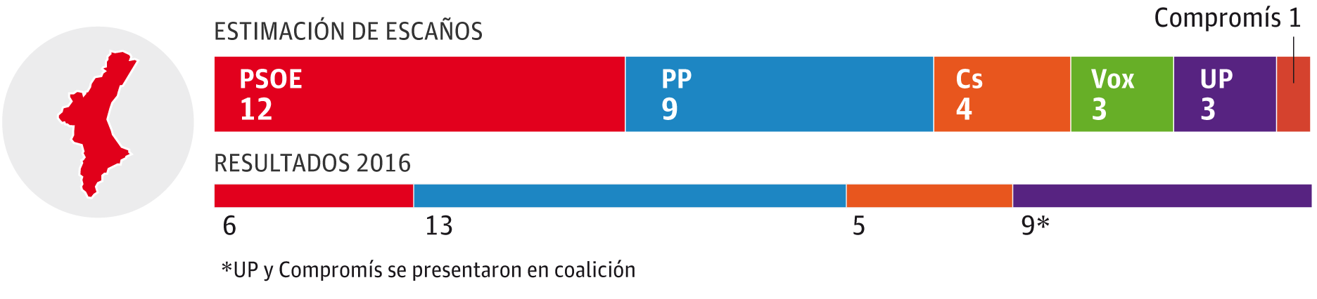 El PSOE ganaría las generales con claridad y doblaría el número de escaños de 2016. Los socialistas superarían al PP, que perdería el liderazgo después de tres décadas y volvería al resultado de 1989. Ciudadanos se estanca, incluso perdería un escaño, y Vox irrumpe con fuerza. El éxito de los socialistas es proporcional a la caída de Compromís y Unidas Podemos.