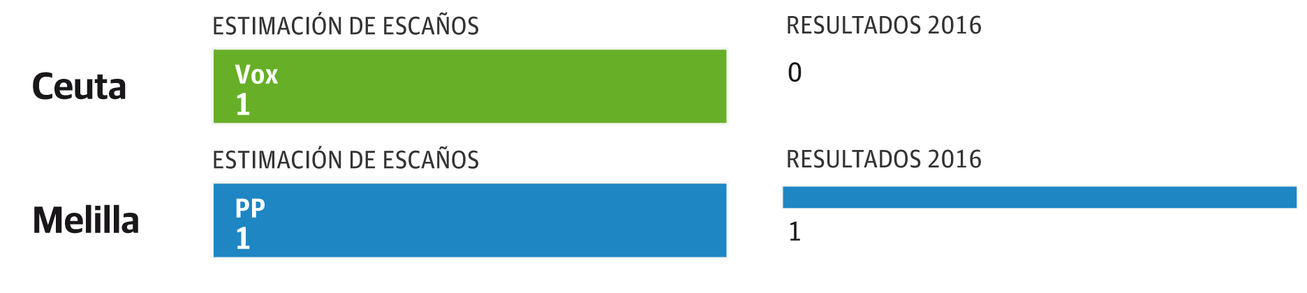 El PP podría llegar al extremo de perder el único escaño que se otorga en Ceuta y que por historia era ya casi de su propiedad de antemano. Y en esta ocasión no sería el PSOE el beneficiado, sino la formación de Santiago Abascal. Y es que el discurso de la ultraderecha parecer haber calado en una parte importante del electorado de la ciudad norteafricana. En Melilla, el partido conservador sí que lograría mantener su actual diputado.