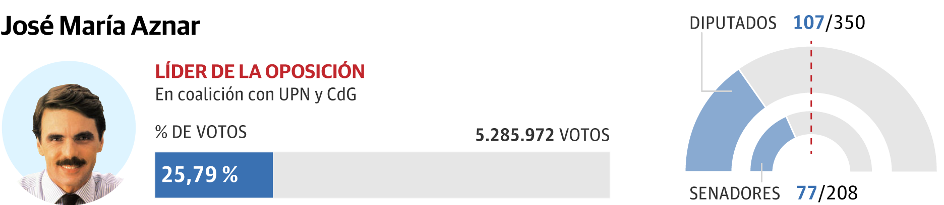 El PSOE venció por primera vez sin mayoría absoluta. El PP le pisaba ya los talones: sumó 2,7 millones de votos más y redujo en nueve untos porcentuales su distancia con los socialistas. Aznar pronosticó «una nueva etapa política» tras quebrarse la «hegemonía socialista».
