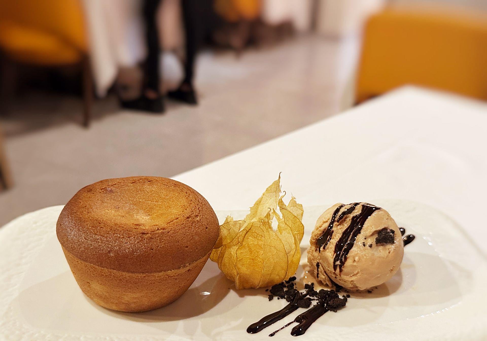 De postre, coulant casero de praliné de avellanas Valrhona con helado de avellana, que explota en boca, impregna el paladar y se complementa con dos copas de vino dulce de Toro y de Mérida (Viña Santa Marina). ¡Ambrosía en esencia! Después, el contraste amargo de un expreso Imperiale con cuerpo y con mensaje: un proverbio turco en el sobre. Es algo común en Hervás, donde la hostelería apuesta por estos cafés placentinos con frase azucarada, aunque el mensaje fundamental es este: el Ambroz sigue siendo una escapada gastronómica de alto nivel.