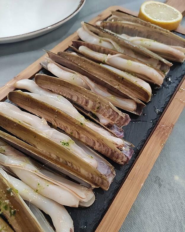 De los entrantes, destacables unas navajas, tersas, con un muy buen punto de plancha y aliñadas ligeramente con un aceite de ajo y perejil. No merecían tanto la pena unas anchoas de Santoña que, aunque de muy buena factura, tenían exceso de sal y estaban acompañadas de un salmorejo un poco pasado de ajo.