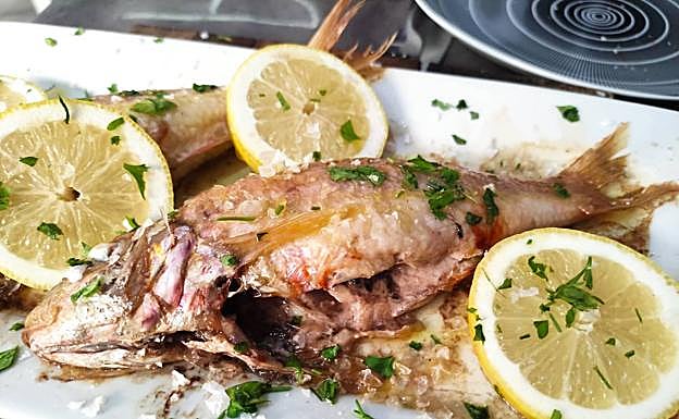 Mejoró el menú con una fantástica barriga de atún con tomate. El atún, perfecto de punto, se encontraba napado con una canónica salsa de tomate que, aparte de potenciar los sabores, aportaba una melosidad golosa al conjunto del plato. Correctos unos muy frescos salmonetes «a la brasa» que, posiblemente, fuesen al horno. Estaban un poco más hechos de la cuenta, aunque muy ricos de sabor.