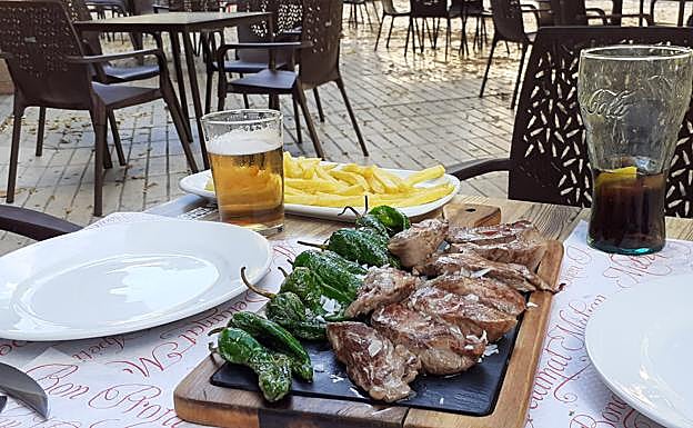 El género es ibérico y el solomillo (14 euros) o la pluma a la plancha (15 euros) acompañado de unos pimientos fritos y patatas desfila entre las mesas con generosidad. Y si al que le gusta el tardeo va a por todas, disponen de chuletón de lomo alto (33 euros).
