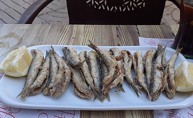 En carta, los boquerones fritos (11 euros la ración completa) no tienen un rebozado grosero, como se estilaría en cualquier bar de la zona y los mejillones a la vinagreta (12 euros) da gusto verlos.