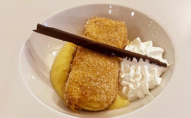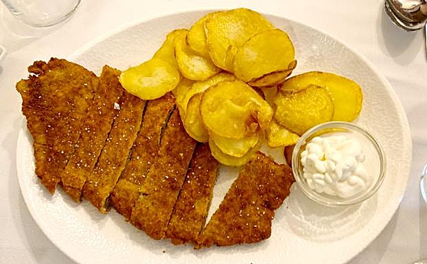 ¿Hace honor el filete de ternera empanado al nombre del restaurante? Hay descuido en el emplatado: la carne por aquí, las patatas por allá y un cuenquito con salsa por acullá. Está bien la milanesa, pero no superaría la prueba de la romería: sobró, nos la llevamos y fría no hubiera triunfado en un San Isidro. A estas alturas de la comida, ya se podían establecer conclusiones: local bien dispuesto, entorno agradable, servicio eficaz, carta tentadora y variada y buen producto, pero falta el remate final, esa concentración en los detalles culinarios que es básica en la ceremonia del buen comer.