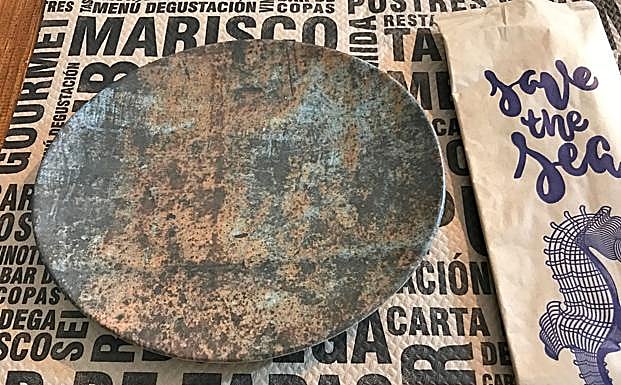 Pero no nos dejemos llevar por las primeras impresiones e investiguemos. En la carta, eclecticismo: desde un humus y un salmorejo sin gluten hasta un manjar de atún con lima, sal negra y AOVE o unas albóndigas sobre compota de manzana y curry. Hay tatakis de atún y de ternera, arroz extremeño con verduras, setas y torta o chuletones de atún. Ante tanta tentación prometedora, dejamos de especular, entramos y nos sentamos en unas sillas no muy cómodas, pero graciosas. Detalles: baños chicos, pero oliendo muy bien y súper limpios, servicio informal, pero atento y profesional, decoración con mensaje: árboles pintados en las paredes, macetas y la leyenda salvemos el mar en el sobre de los cubiertos.