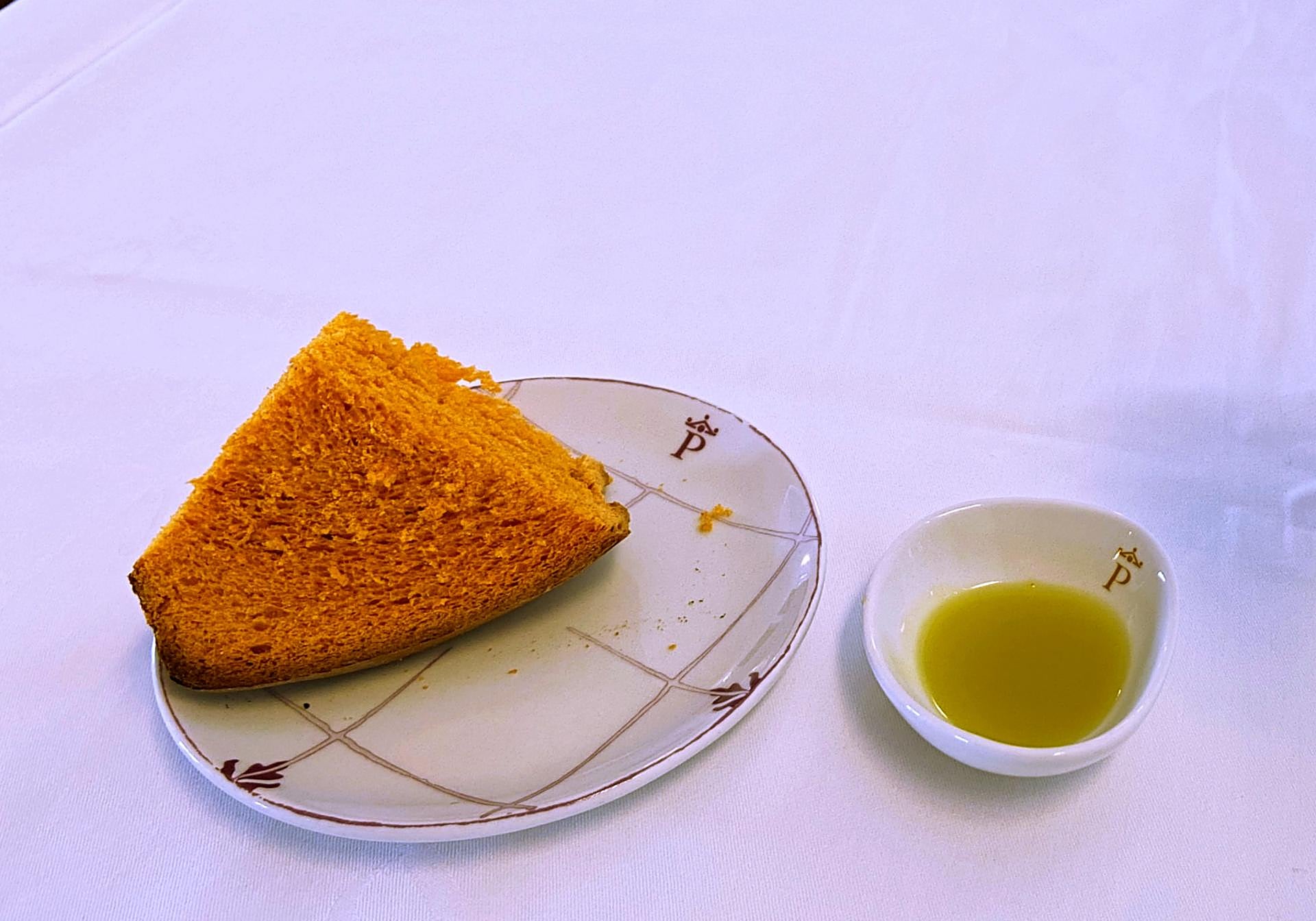 Cuidan el pan: se puede escoger entre integral de trigo, candeal o de pimentón y lo acompañan con un cuenco de aceite de Jaén, que ya habíamos probado en el Parador de Jarandilla y no hemos cambiado nuestra percepción: la pruebas y la olvidas. El aperitivo de cortesía es un entretenimiento a base de tomate con sardina ahumada.