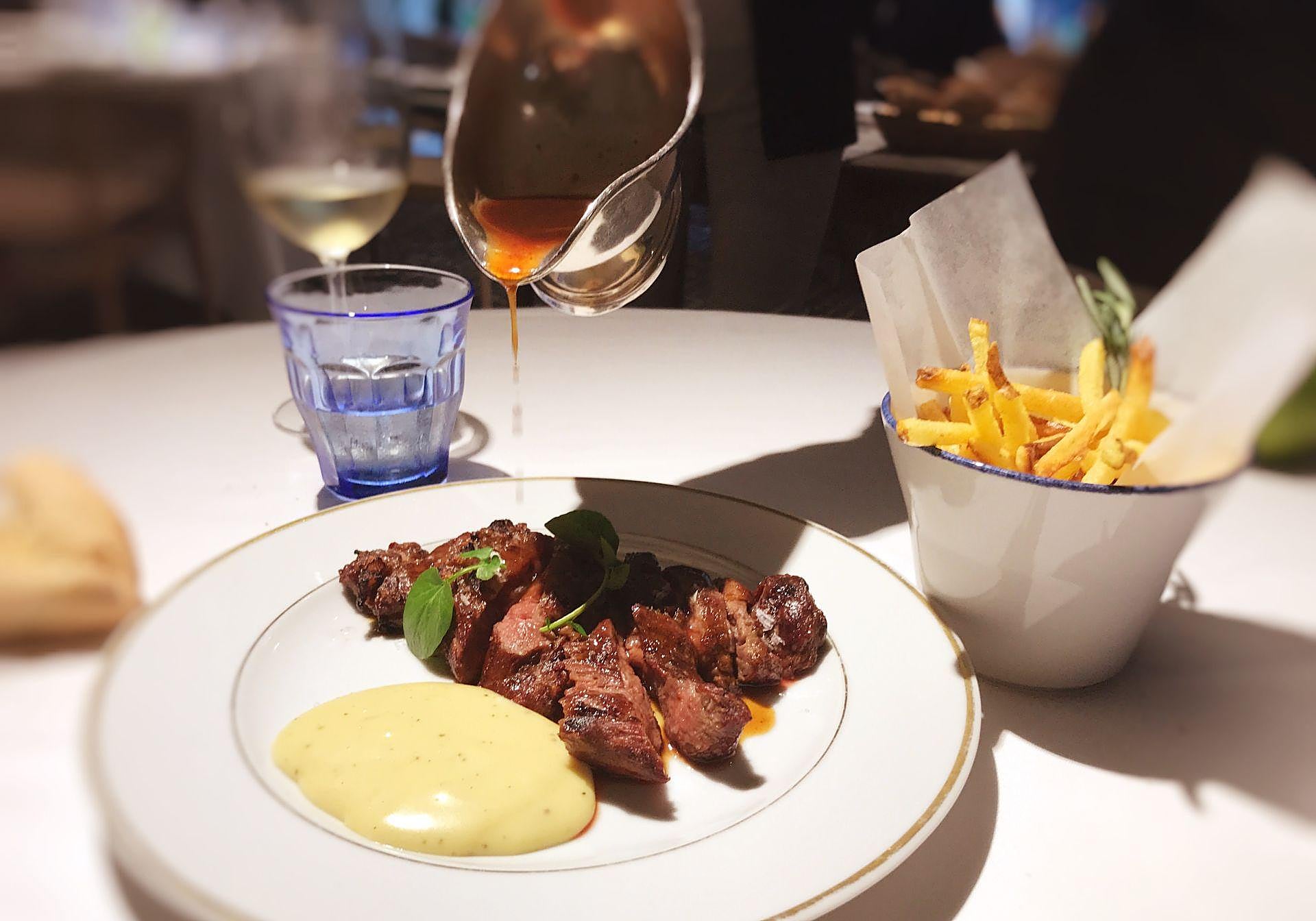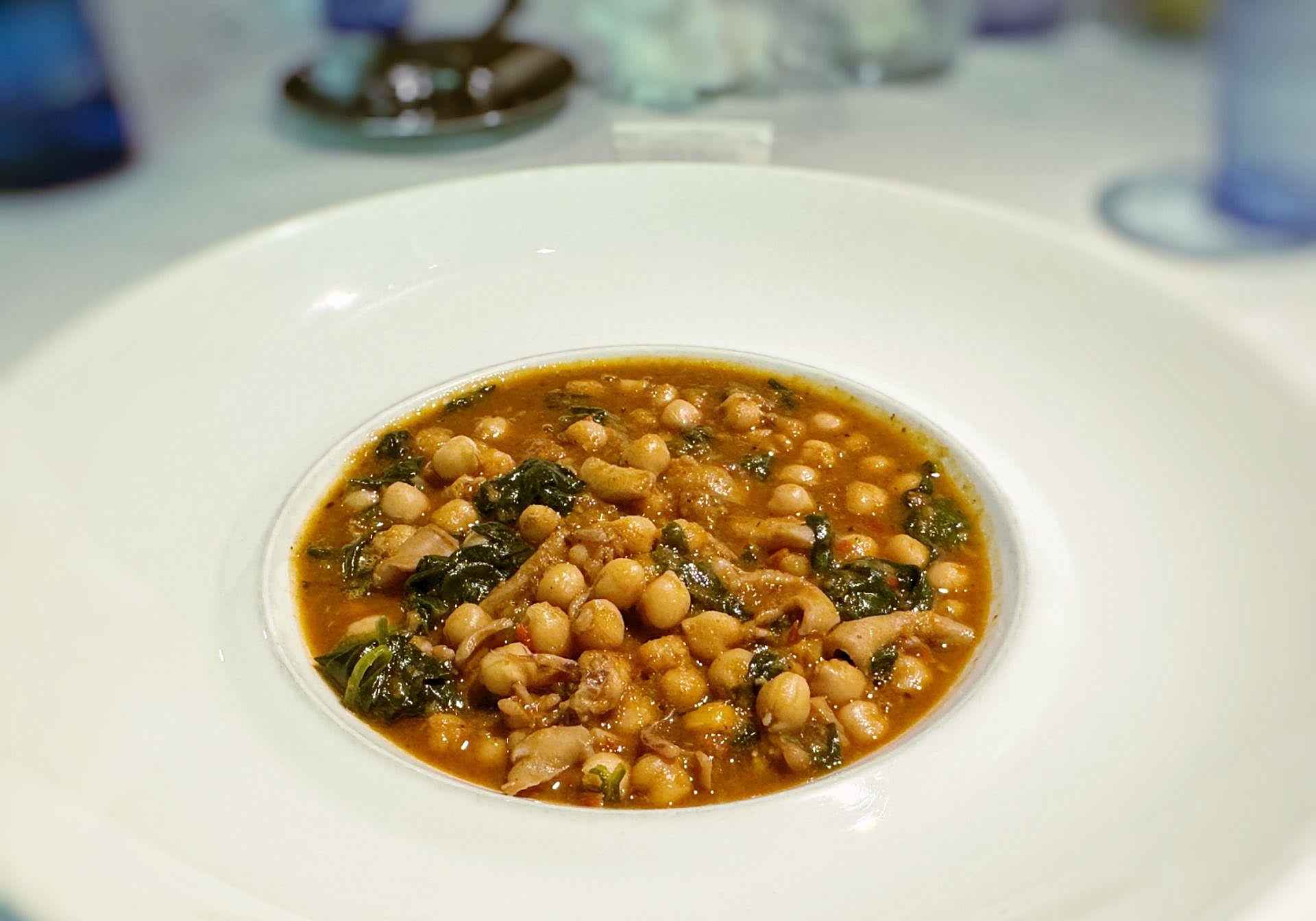 Apostamos después por los guisos: garbanzos, calamares y espinacas con un toque picante que anulaba los matices. Poco aportaban los calamares con ese aderezo tan intenso. Eso sí, los garbanzos eran magníficos, aterciopelados, suaves, blanditos sin derretirse, y dieron paso a un solomillo de vaca con salsa de foie y setas, parmentier de patatas y espinacas. La carne, exquisita, producto excelso, calidad suprema, sabor antiguo. La salsa acompañaba, no empañaba.
