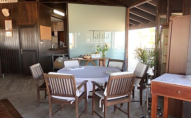 El restaurante Tabla Beach Club, en la arena de la playa de la Canaleta de Punta Umbría, se ha convertido en todo un referente de la costa andaluza para tomar buen pescado a la plancha. Su dueño y chef, Pepe Camacho, El Tabla, empezó hace más de dos décadas con un chiringuito de playa donde se podía degustar los pescados y mariscos de la zona. Con los años se fue especializando en pescado a la plancha — que no a la brasa– y actualmente es todo un maestro en la materia. Su restaurante, aunque podría calificarse de chiringuito, goza de excelente calidad no solo por el buen uso de la plancha y de los fogones, sino por su servicio que incluye mantel de tela en las mesas y un cuidado entorno que nos evoca estar en un oasis.