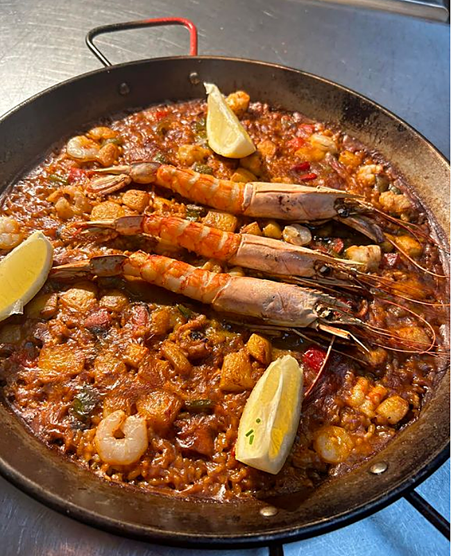 Quien también recibió un Solete de verano recientemente es Vicente Maya, de Casa Vicente. Aprendió a cocinar profesionalmente en Valencia, la cuna del arroz. Por eso, actualmente en su restaurante de Cabeza la Vaca los hace de decenas de sabores: de perdiz y paloma; de bogavante; negro; de chuleta de vaca; de bacalao y coliflor... «Lo hago de lo que tengo», confiesa. Eso sí, todos son planos, con el tan deseado socarrat. Preguntado por el secreto, Vicente detalla que el arroz no se toca, sino que se remueve por las asas. «La paella tarda en hacerse unos doce o trece minutos a fuego alto. Cuando esté casi hecha, se baja el fuego al mínimo hasta los 17 minutos. Apagamos y hasta los 20 se hace con el calor residual». Palabra de chef arrocero.
