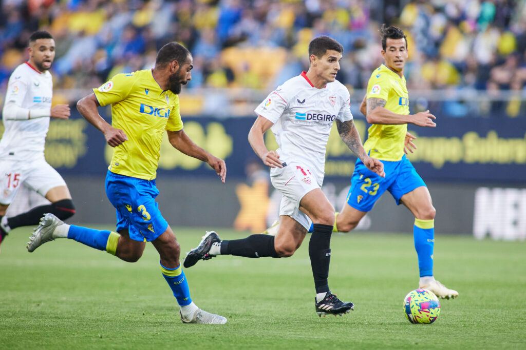 Erik Lamela disputando un partido contra el Cádiz CF.
