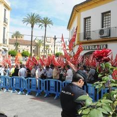 La concentración ha sido convocada por los sindicatos CCOO y UGT y en ella han participado también miembros de otras organizaciones sociales como el Campamento Dignidad