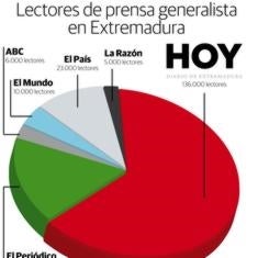 Los últimos datos del Estudio General de Medios (EGM), informe que mide las audiencias de los medios de comunicación españoles más importantes, arroja conclusiones significativas para el diario HOY, que ve cómo aumenta paulatinamente su liderazgo en el mercado de la prensa extremeña. Llega a 136.000 lectores, 2.000 más que tres meses antes y que hace un año, tiempo durante el cual esa cifra ha pasado de representar el 56% de toda la audiencia de prensa de pago regional a sobrepasar el 63%. La otra cabecera regional, el Periódico Extremadura, con 35.000 lectores, cae en el mismo periodo del 17% al 16%.