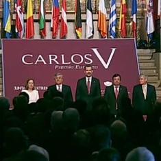 La ceremonia, que coincide con la celebración del Día de Europa, cuenta con la presencia del presidente del Parlamento Europeo Antonio Tajani; de los ministros de Asuntos Exteriores, Alfonso Dastis, y de Educación, Íñigo Méndez de Vigo, y de la secretaria general Iberoamericana, Rebeca Grynspan.