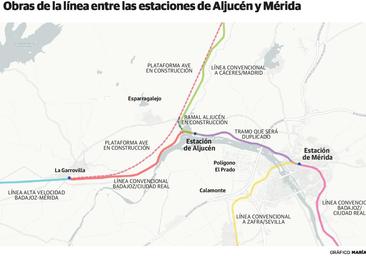 Como ha adelantado HOY, Adif Alta Velocidad destina 32,14 millones de euros a la duplicación de 5,5 kilómetros de tendido entre Mérida y Aljucén, estación situada al oeste de la capital autonómica. La obra tiene un plazo de ejecución de catorce meses y prevé el corte del servicio durante seis meses, una medida que se prevé para dentro de un año, pero que habrá que perfilar con la empresa adjudicataria.
