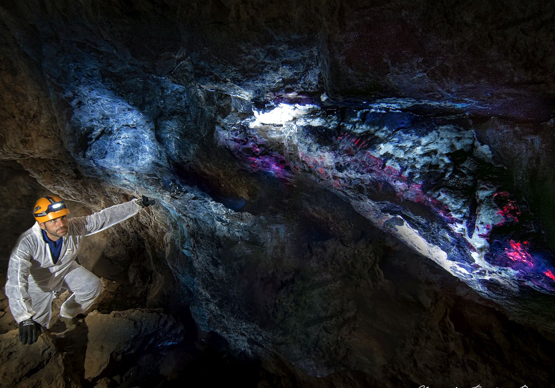 Explica Amo que «la sensación cuando entras es que es una mina, pero al final te parece más una cueva. Llama la atención porque gracias a la luminiscencia sobre los filones, a través de rayos ultravioletas, se van a mostrar colores rojizos, amarillentos, verdosos...». La magia de la luz, apuntala.