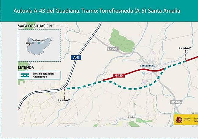 Cabe recordar que en marzo del pasado año el Ministerio adjudicó el contrato para redactar el proyecto para construir este tramo de la autovía A-43 entre Torrefreneda (A-5) y Santa Amalia. El importe de adjudicación del contrato, que abarca 11 kilómetros entre las dos localidades pacenses, es de 1,6 millones de euros. Es el tramo inicial de la carretera N-430 que une la provincia de Badajoz con Ciudad Real.