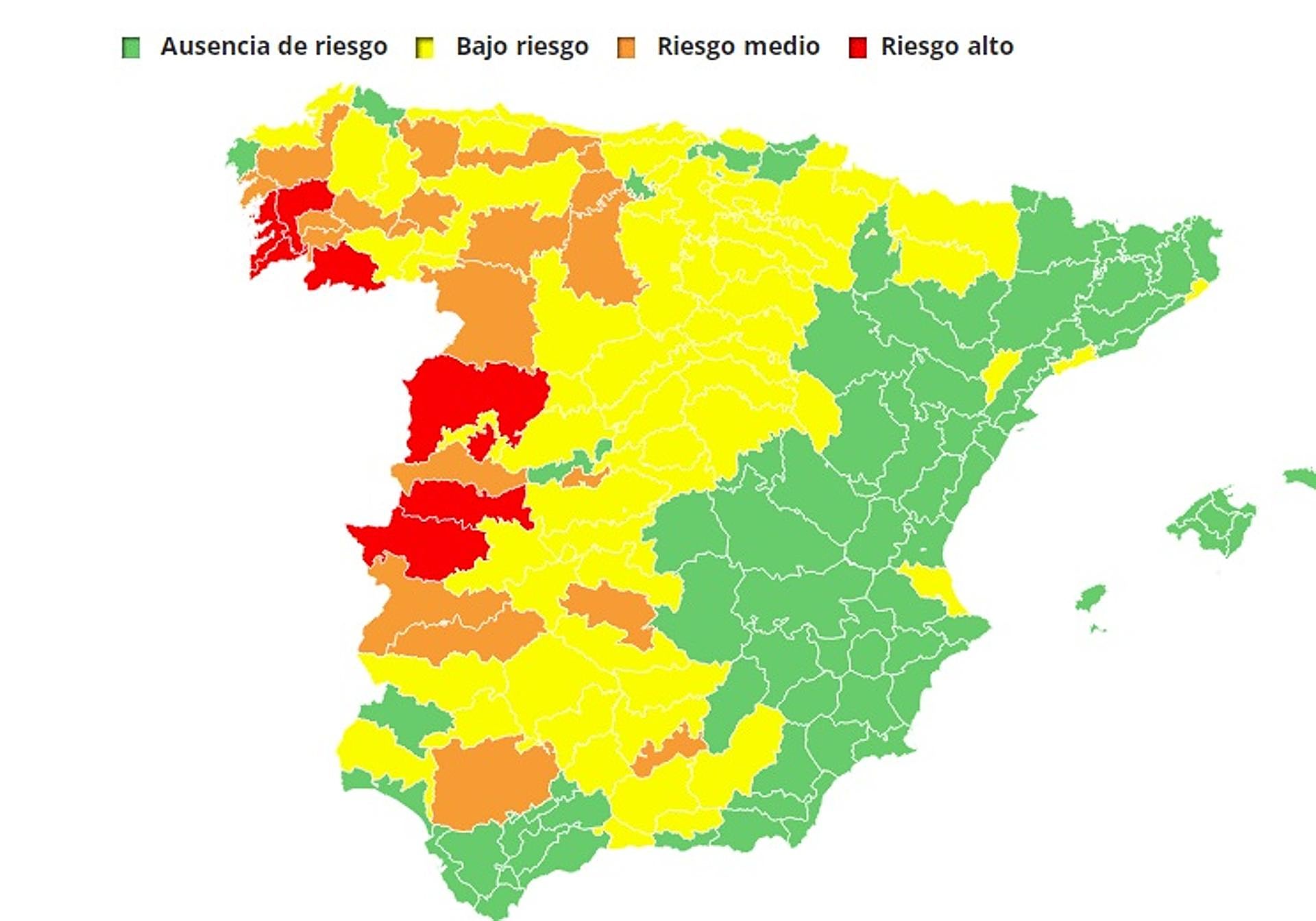 En cuanto a las temperaturas máximas, ascenderán de forma ligera en la mayor parte del país, con aumentos más acusados en interiores del cuadrante sureste y en la mitad suroeste de Galicia, y con algunos descensos en Baleares y nordeste de Cataluña. Se podrán superar los 35ºC en el sur de Galicia, en depresiones del extremo este peninsular y en la mitad sur de la vertiente atlántica, donde llegarán a los 38-40ºC en valles.