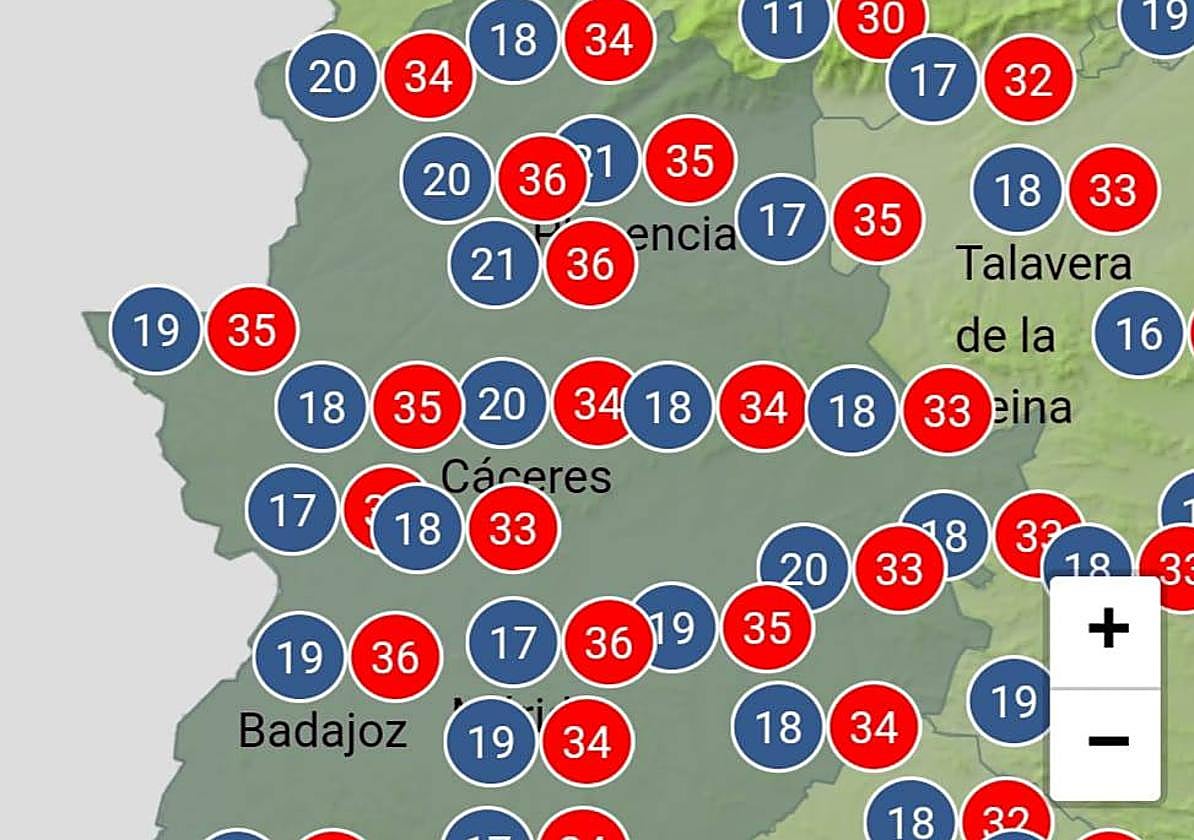 Pese a esta tendencia a la baja que comenta Manzano, Extremadura seguiría encontrándose ante una anomalía de las temperaturas para esta época del año, con valores que se encuentran por encima de la media para el final del mes de agosto.