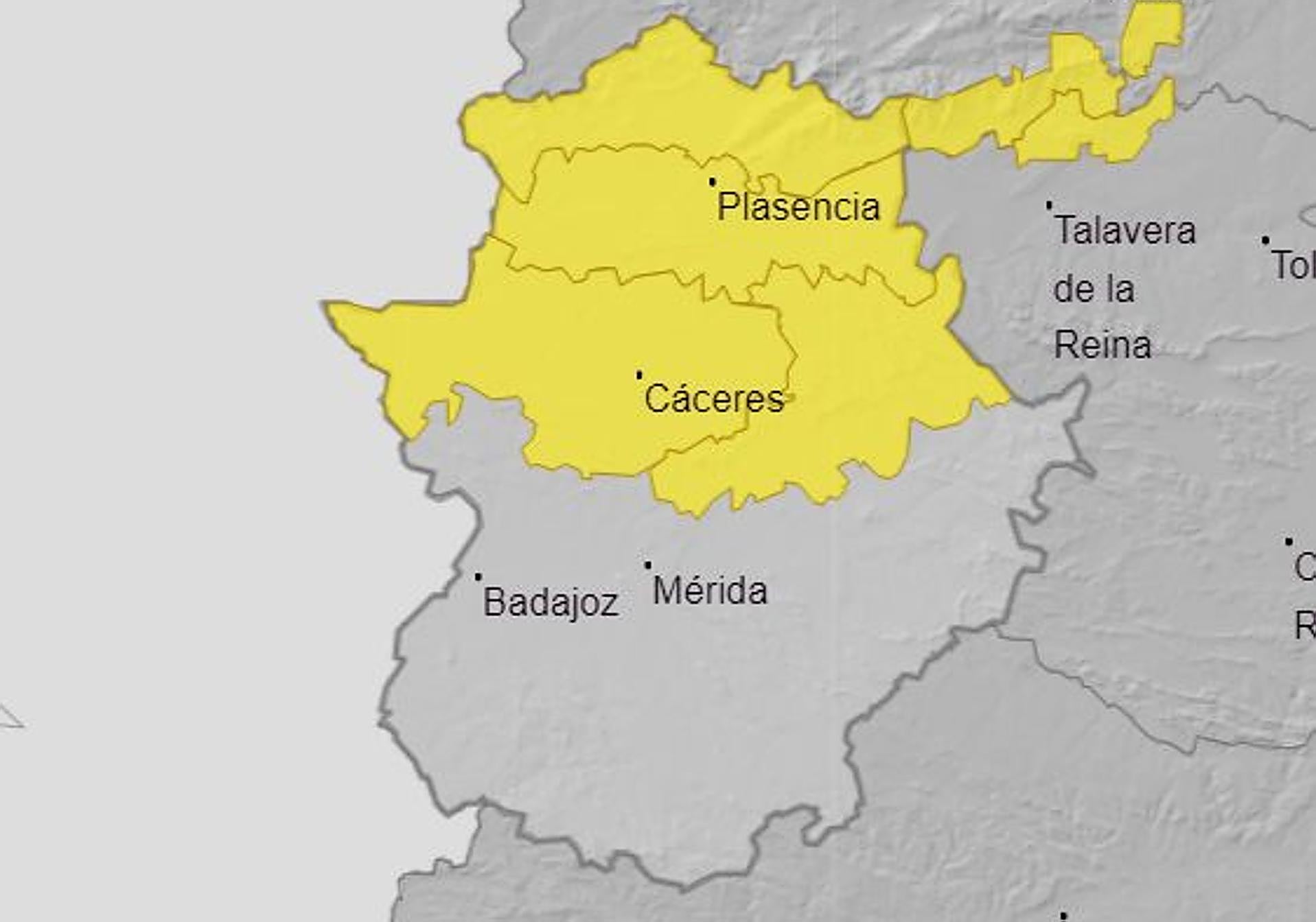 El viernes podrían aparecer ocasionalmente los granizos. Por esta razón, se ha activado la alerta amarilla en toda la provincia de Cáceres entre las 15 y las 22 horas. En el norte se prevé acumular 15 litros por metro cuadrado. Será más probable en la parte oriental. Los termómetros sufrirán un fuerte descenso, más acusado en los valores máximos. La temperaturas seguirá siendo suaves aunque más frescas que los días anteriores. Marcarán entre los 12 y 22 grados en Badajoz y los 12 y 20 grados en Cáceres.