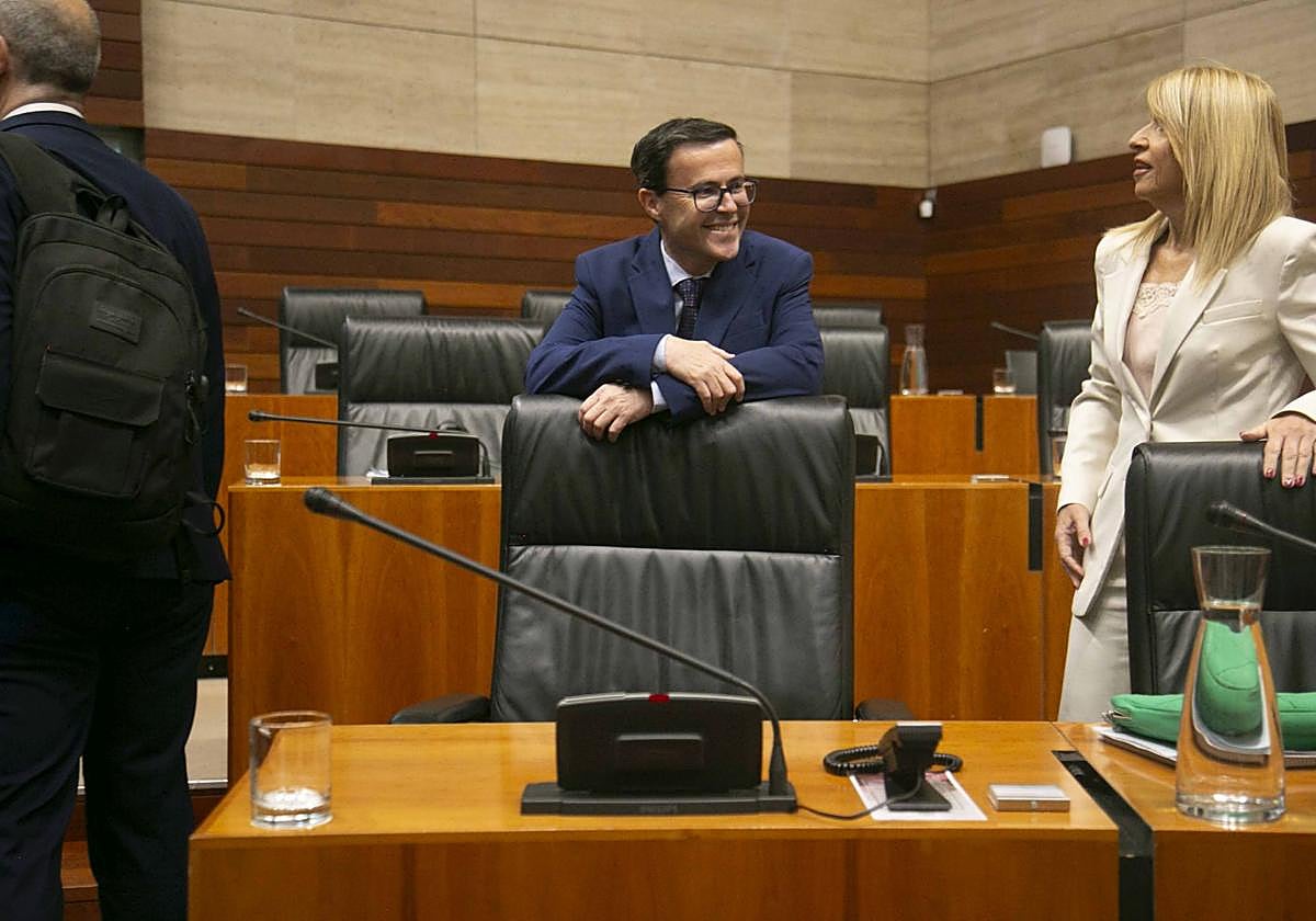 Pero lo que estaba a punto de empezar no era una fiesta . La presidenta de la Asamblea pidió un minuto de silencio por la víctima de violencia machista de Aldeanueva del Camino, asesinada por su pareja esta semana. Fue un instante de calma antes de que comenzaran los dardos dialécticos de la jornada.
